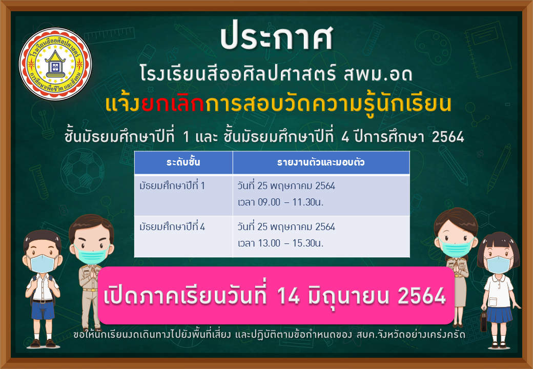 แจ้งยกเลิกการสอบ และวันเปิดภาคเรียน