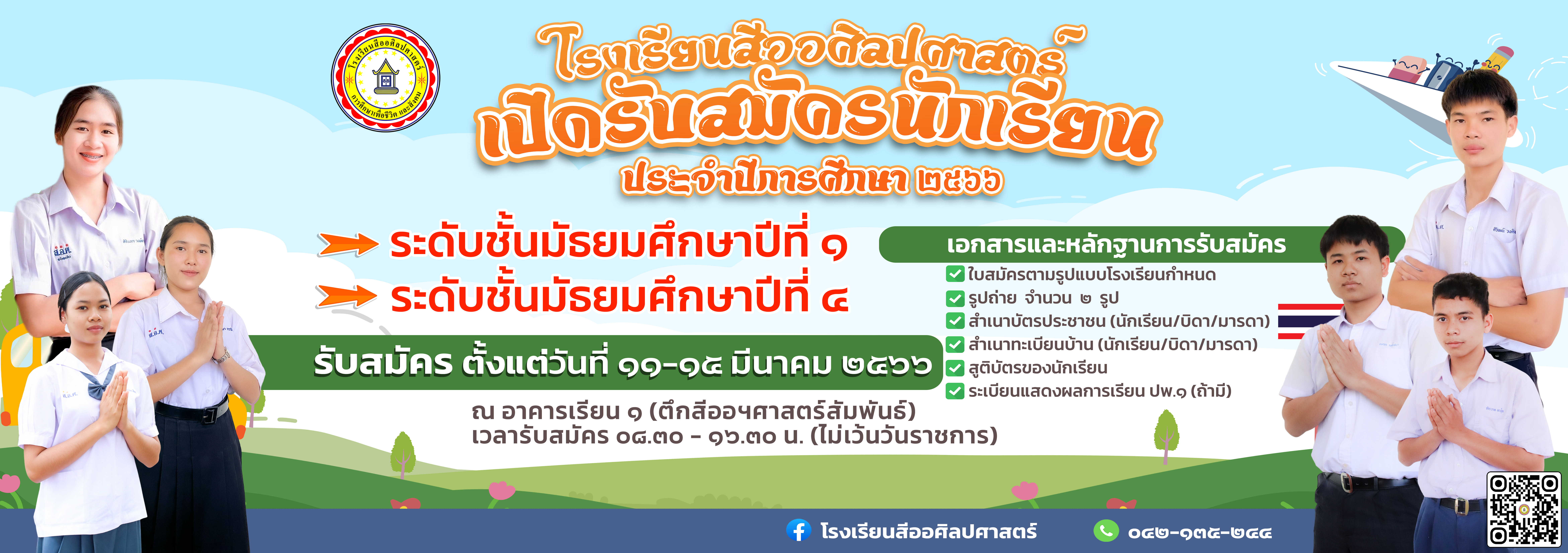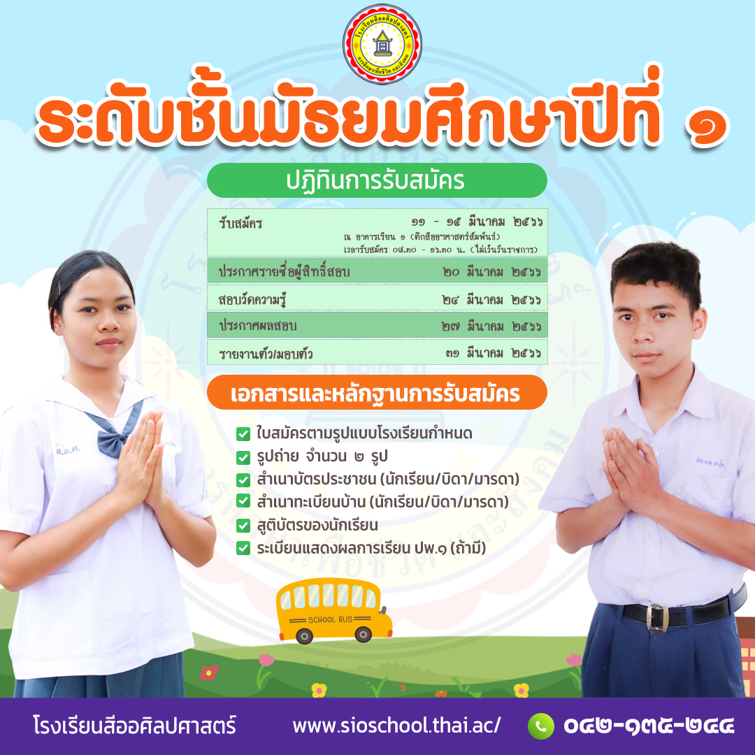 ประกาศรับสมัครนักเรียน ระดับชั้นมัธยมศึกษาปีที่ 1 และชั้นมัธยมศึกษาปีที่ 4 โรงเรียนสีออศิลปศาสตร์