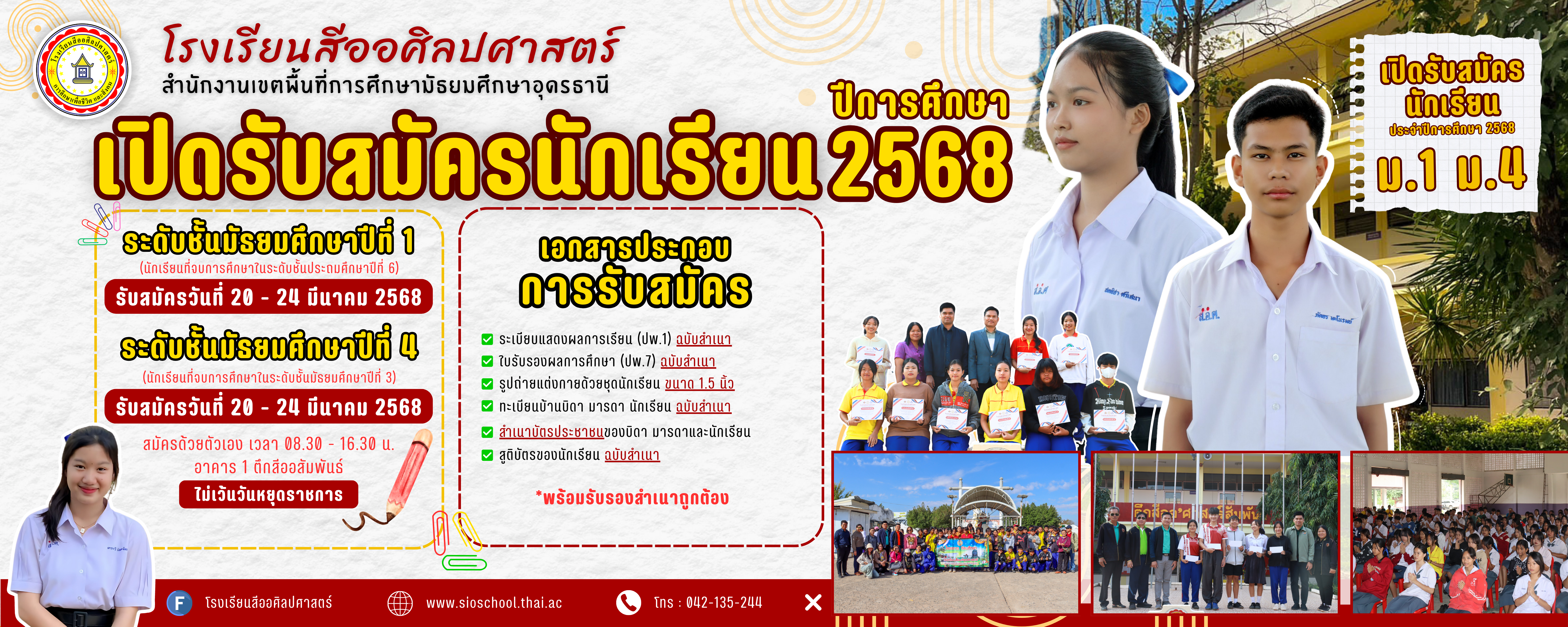 ประชาสัมพันธ์ รับสมัครนักเรียน ชั้นมัธยมศึกษาปีที่ 1 และ ชั้นมัธยมศึกษาปีที่ 4 โรงเรียนสีออศิลปศาสตร์