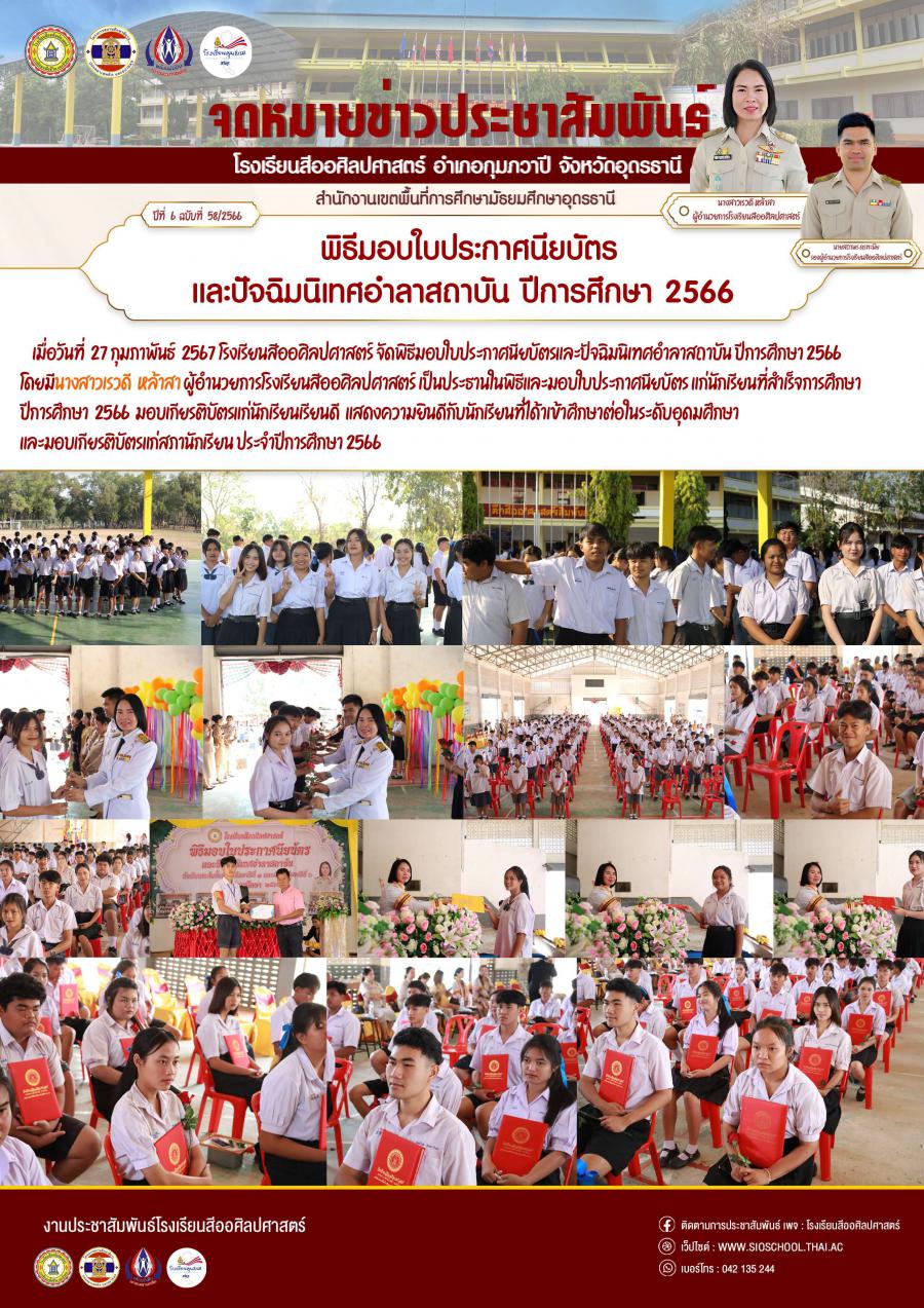 พิธีมอบใบประกาศนัยบัตร และปัจฉิมนิเทศอำลาสถานบัน ปีการศึกษา 2566