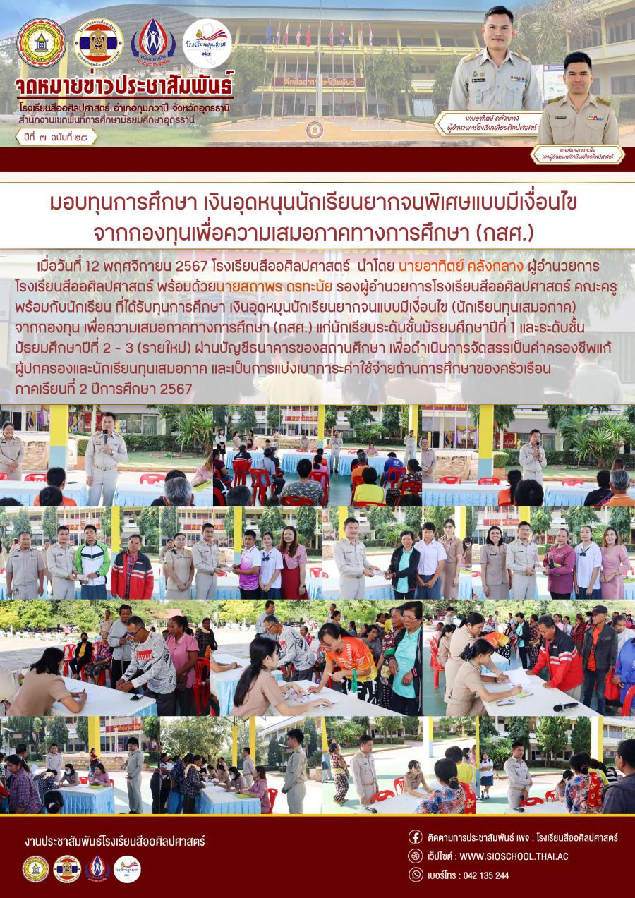 มอบทุนการศึกษา เงินอุดหนุนนักเรียนยากจนพิเศษ แบบมีเงื่อนไข จากกองทุนเพื่อความเสมอภาคทางการศึกษา (กสศ.)