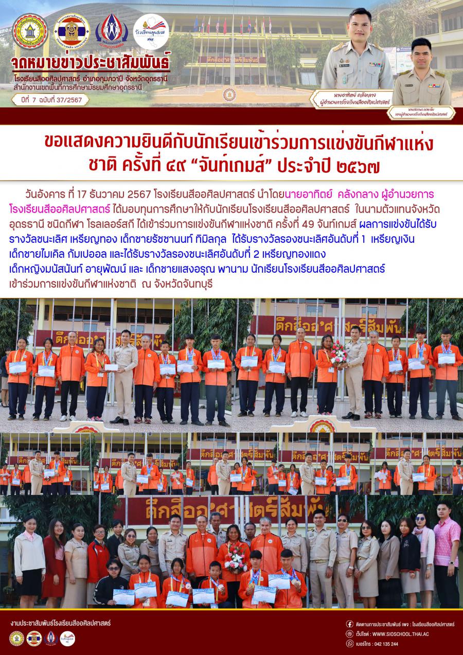 ขอแสดงความยินดีกับนักเรียนเข้าร่วมการแข่งขันกีฬาแห่งชาติ ครั้งที่ 49 จันท์เกมส์ ประจำปี 2567
